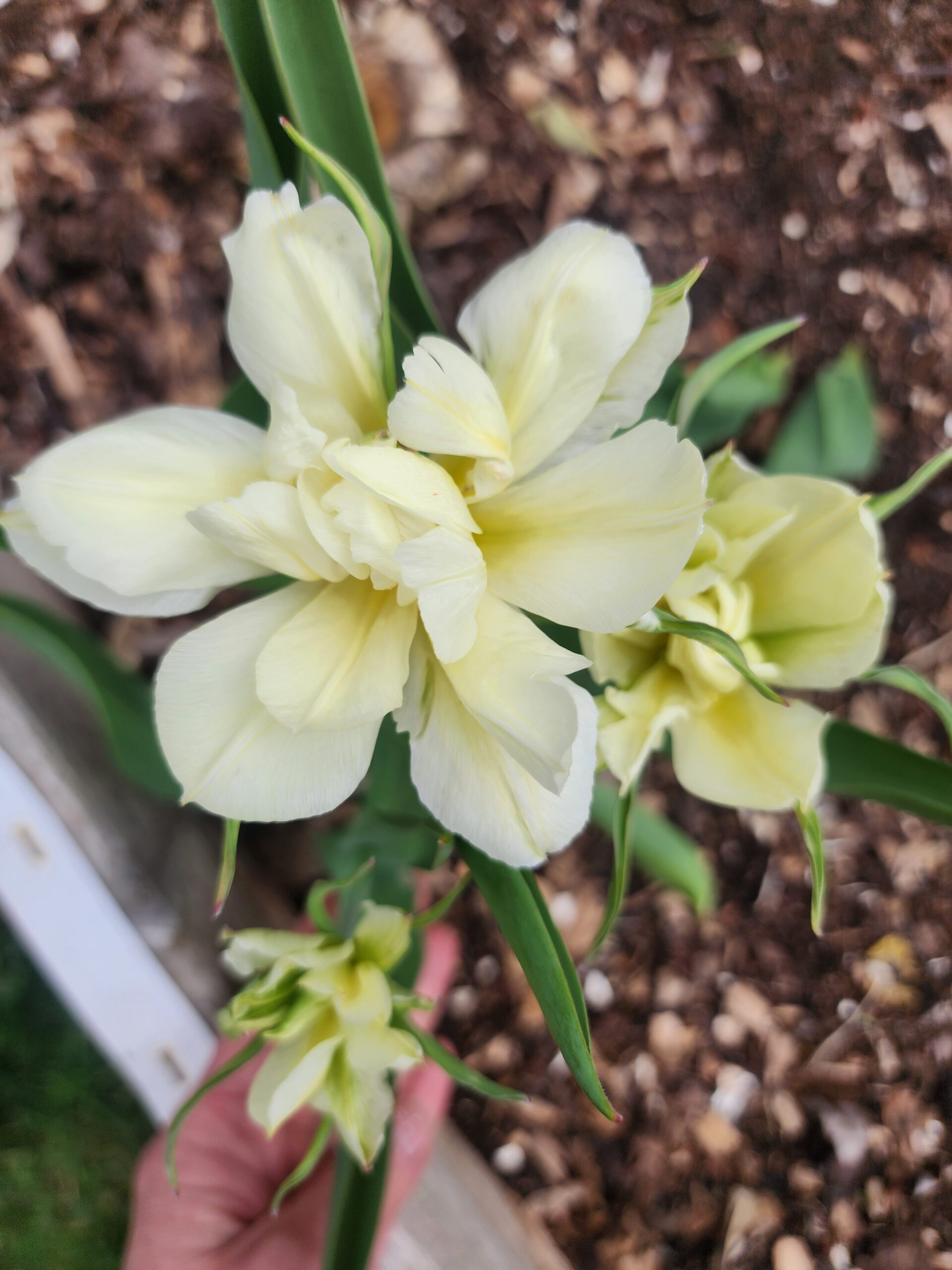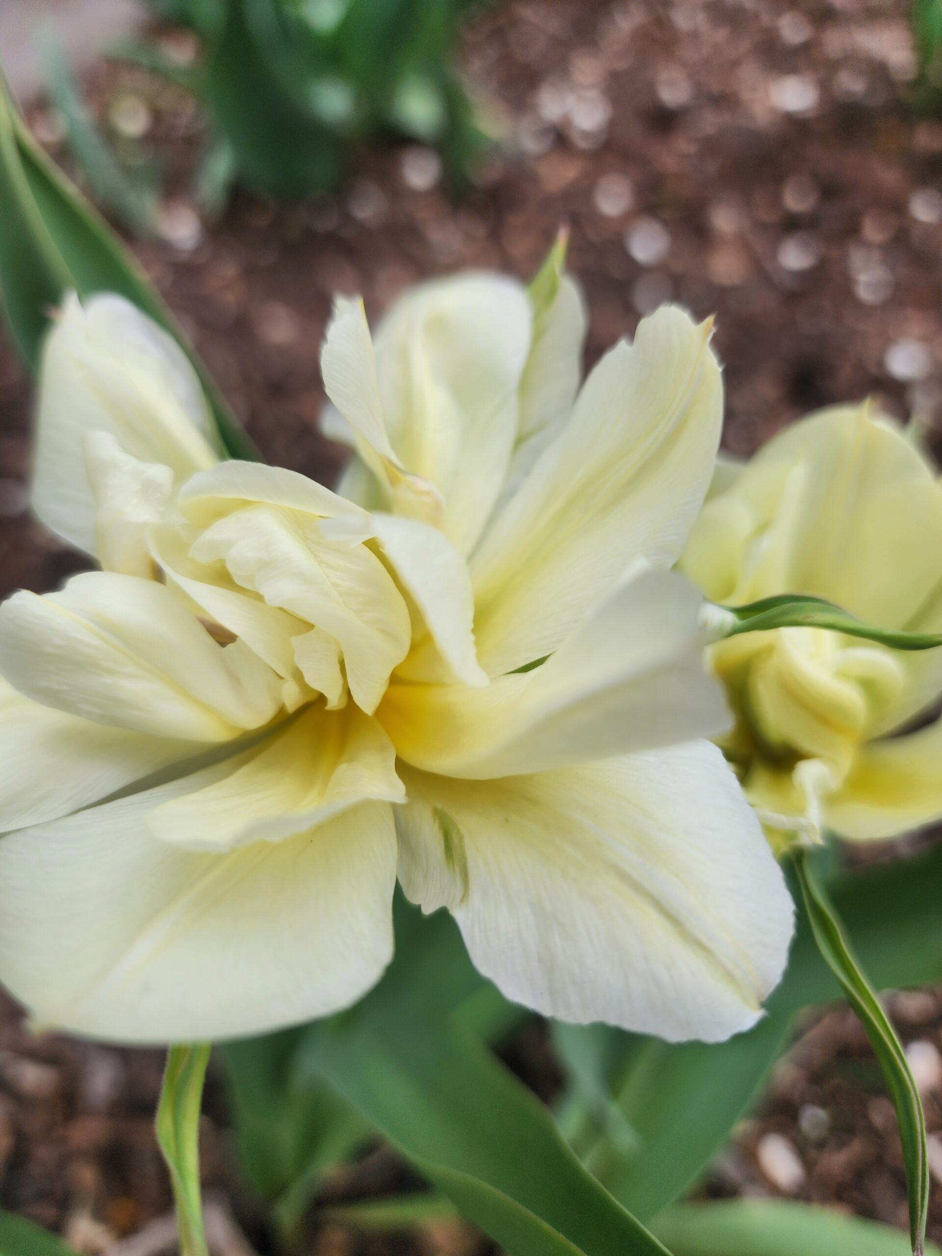 Large single creamy white tulip with a lemony center deep when it opens. There are green lines on the outer petals. A very unique and fun tulip. Would be great for design work.